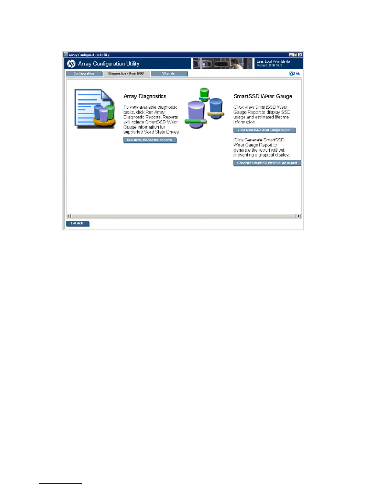 Tasks are selectable from this screen. Additional tasks are available upon clicking Run Array Diagnostics