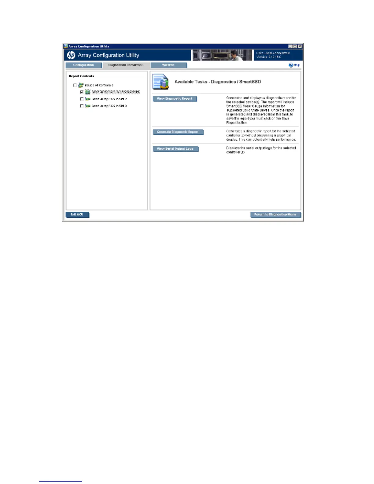 For a list of possible tasks that are available on the Diagnostics/SmartSSD screen, see "Diagnostics tasks (on