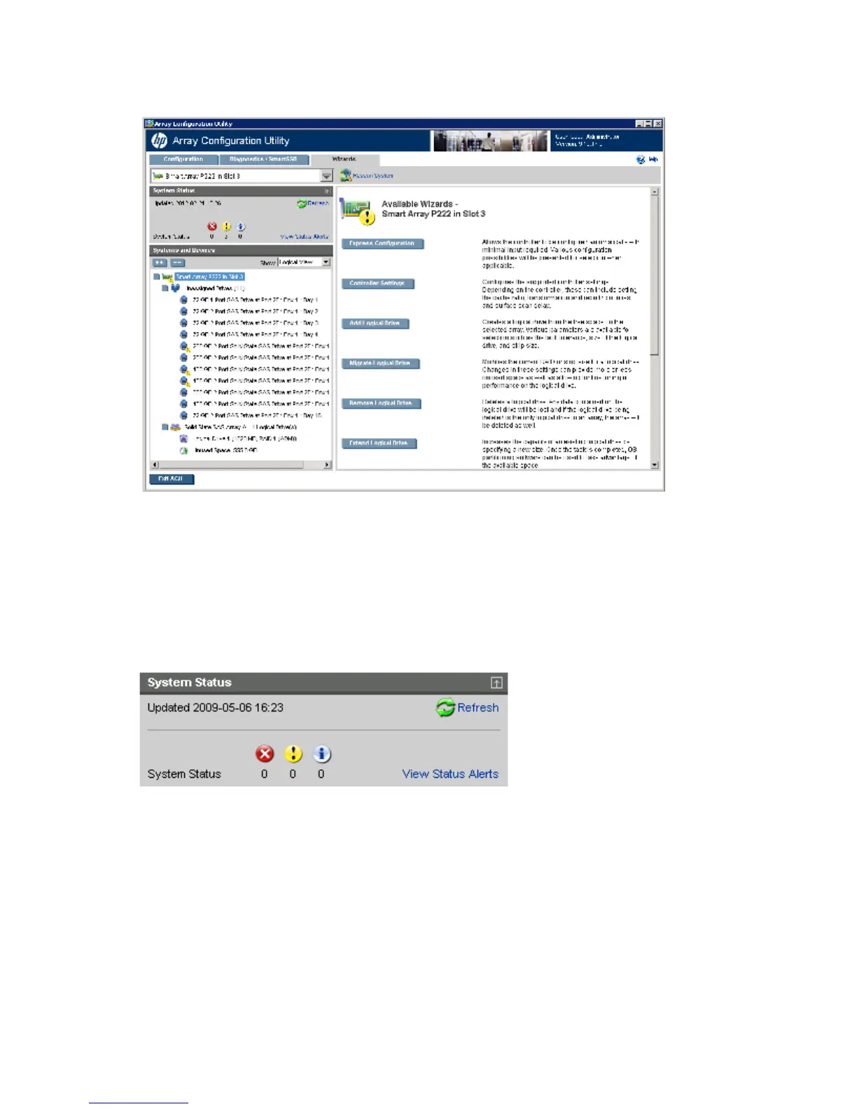 o A tree detailing systems, controllers, arrays, physical drives, and logical drives