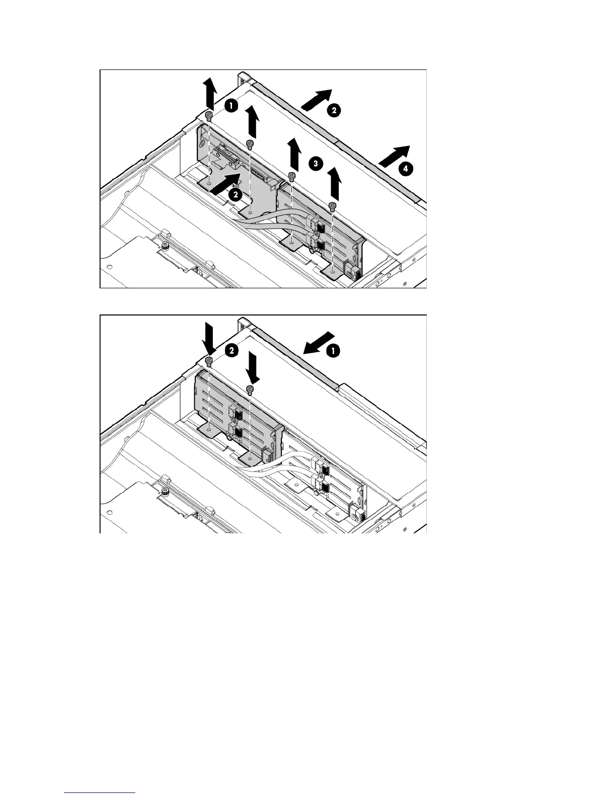 Remove the two primary hard drive retaining screws and slide the cage forward.