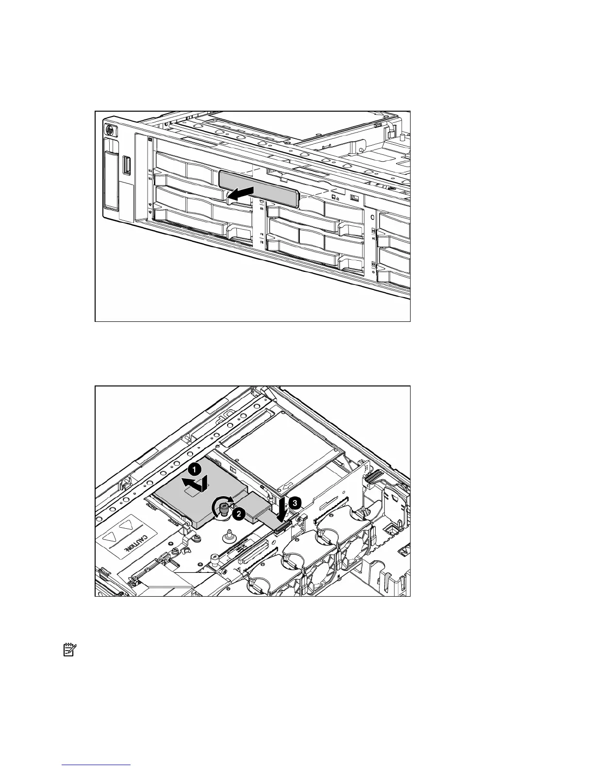 1. Remove the existing hard drive blank or hard drive from the upper-left drive bay ("Removing a hot-