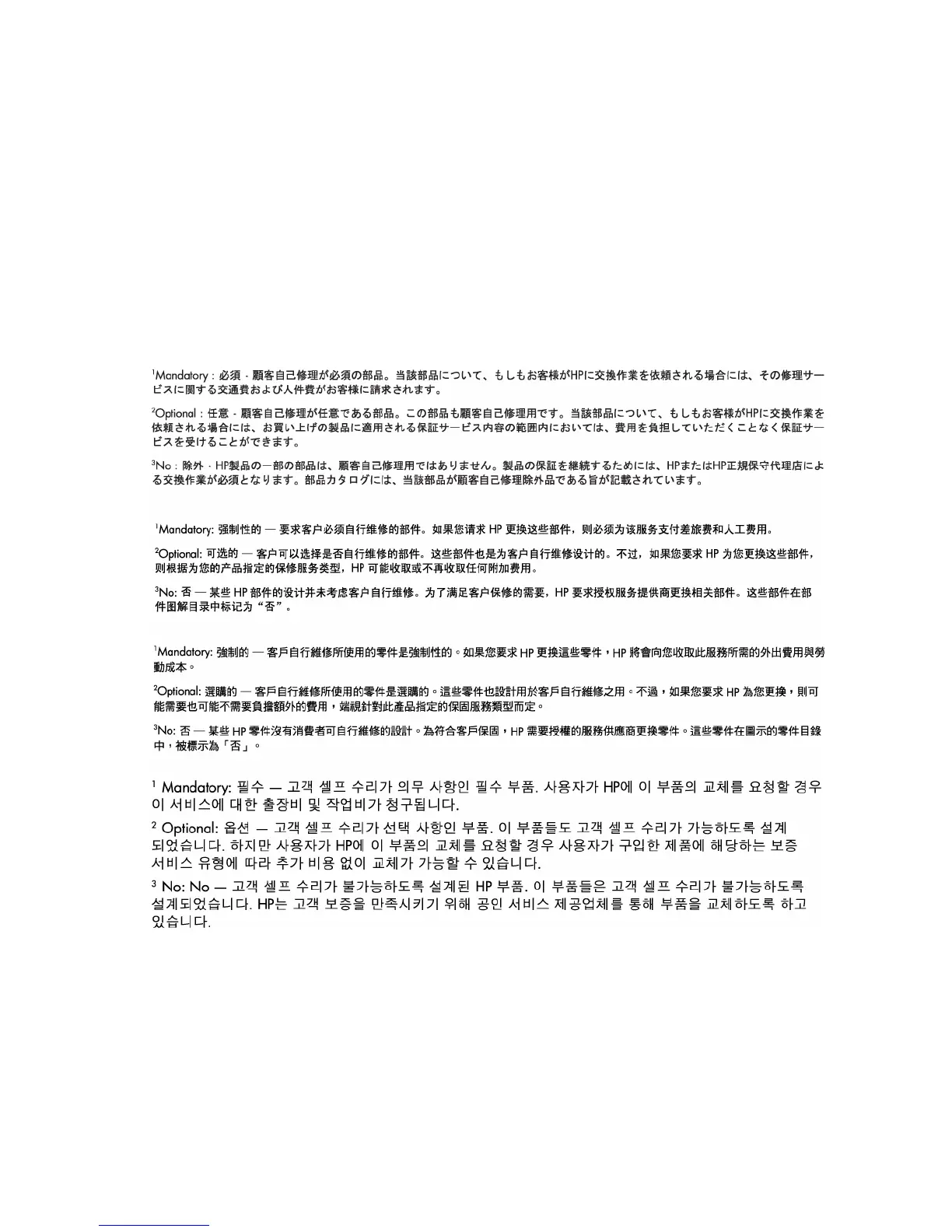 Mandatory: Obrigatória—Peças cujo reparo feito pelo cliente é obrigatório. Se desejar que a HP substitua essas