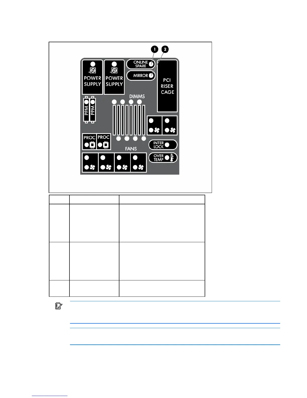 NOTE: The HP Systems Insight Display LEDs represent the system board layout.