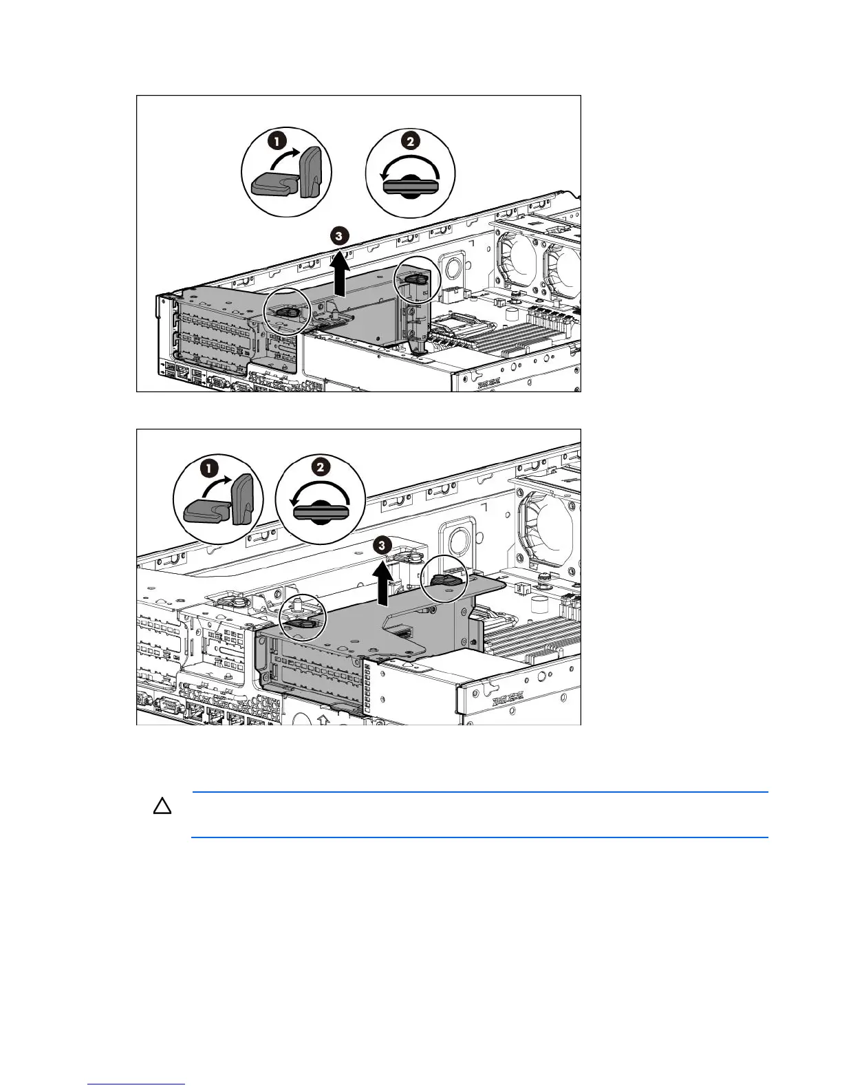 disconnect all power cords before removing or installing the PCI riser cage.