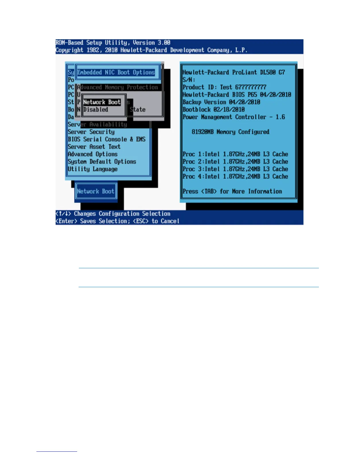 Network Boot option can be disabled. For information on enabling network boot, see Embedded NIC