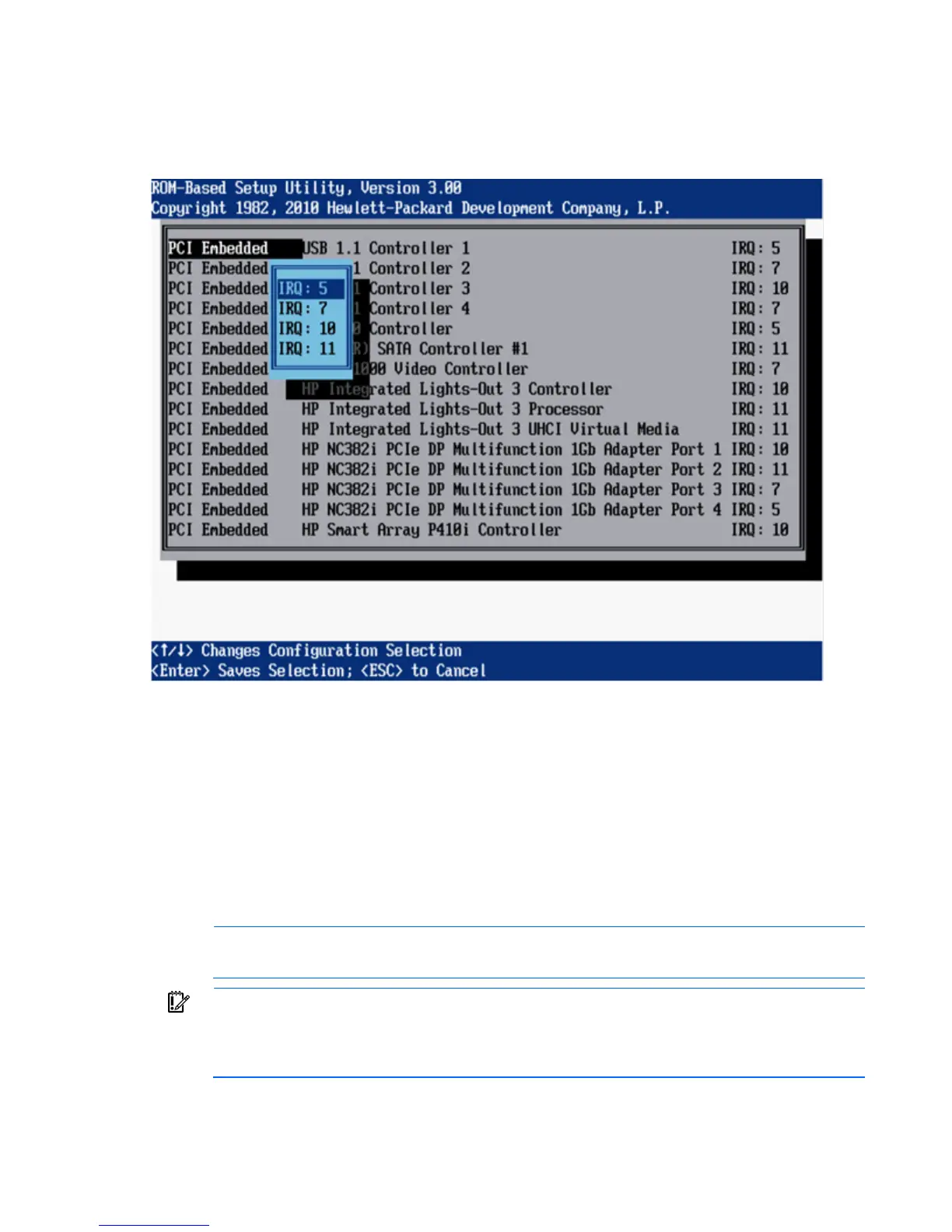 NOTE: Only IRQs that are modified in RBSU retain the change during the next reboot. IRQs
