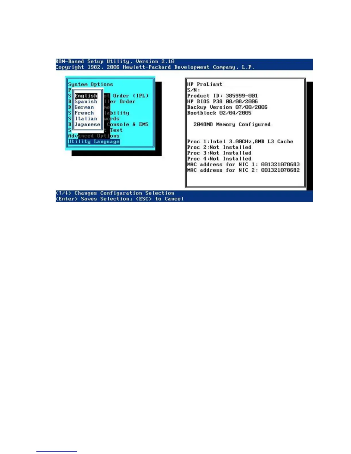 The Utility Language menu enables you to set the display language for RBSU.