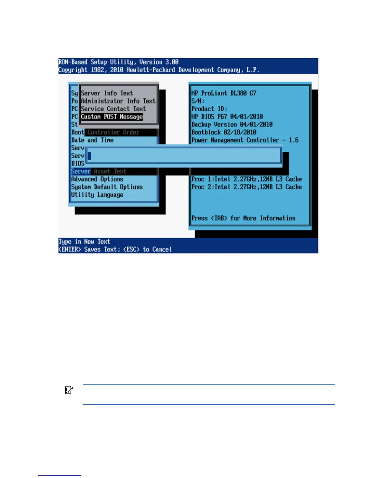 The Custom POST Message option enables the user to enter a custom message to display during POST.