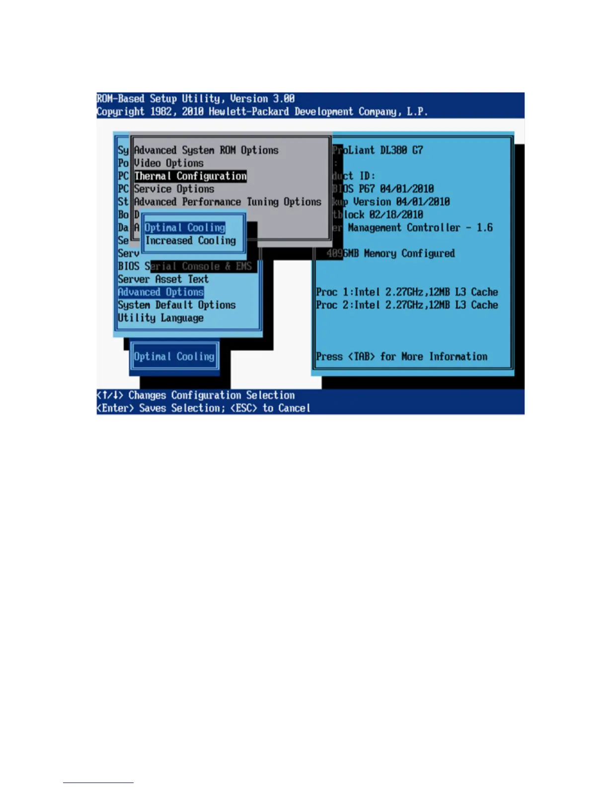 HP recommends selecting Increased Cooling when storage controllers not manufactured by HP are