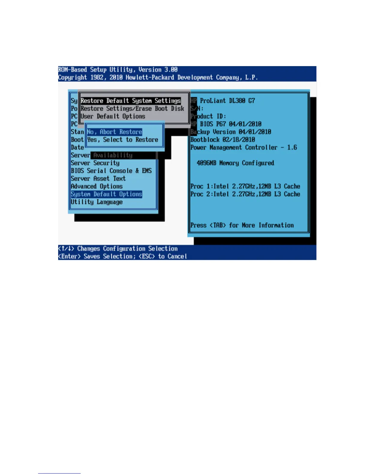 HP ProLiant DL380e - Restore Default System Settings (G7 Servers)