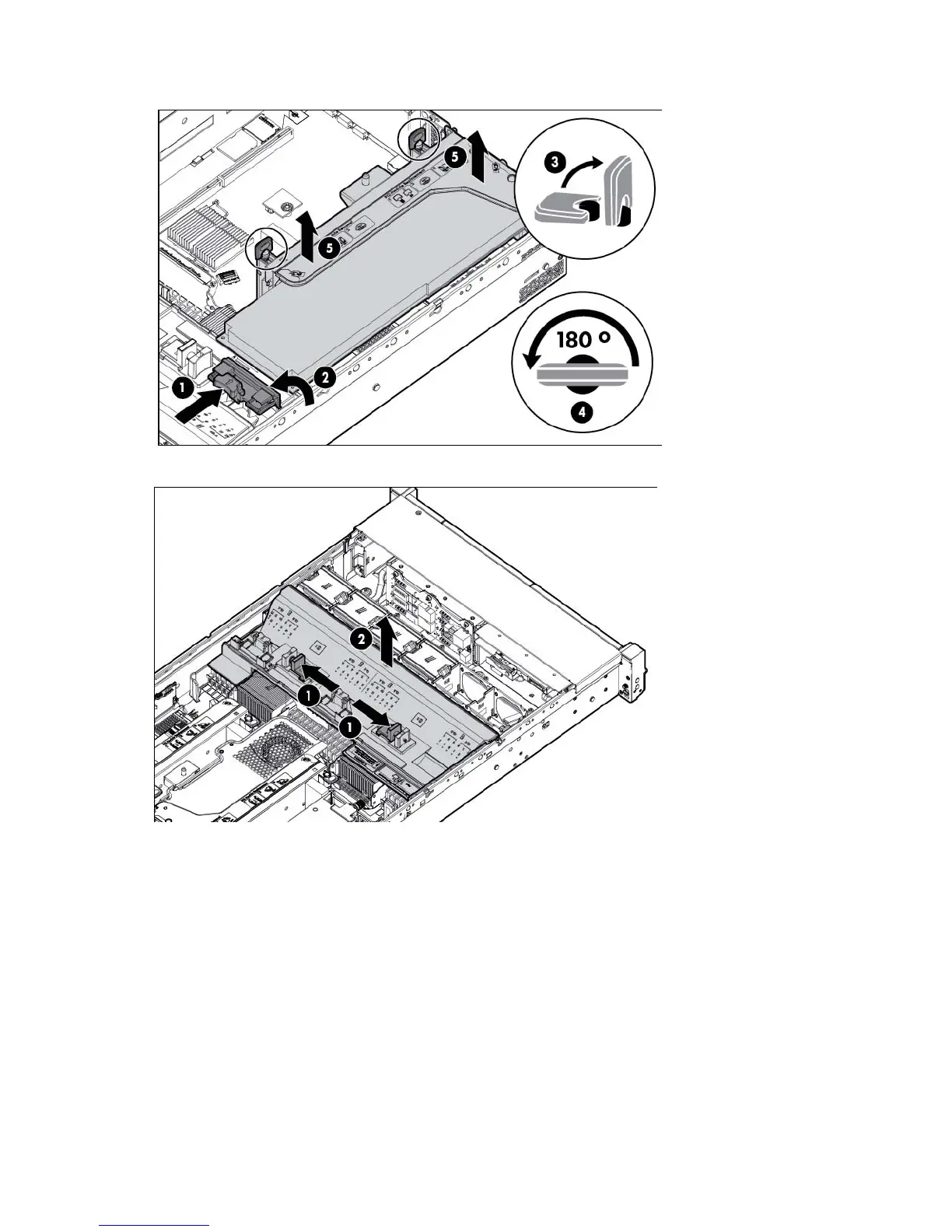 Release the full-length expansion board retainer, and then remove the PCI riser cage.