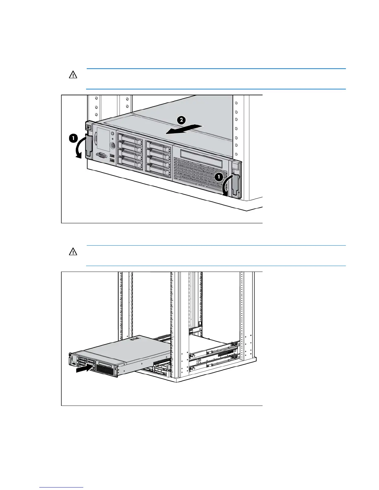 WARNING: To reduce the risk of personal injury, be careful when pressing the server rail-release