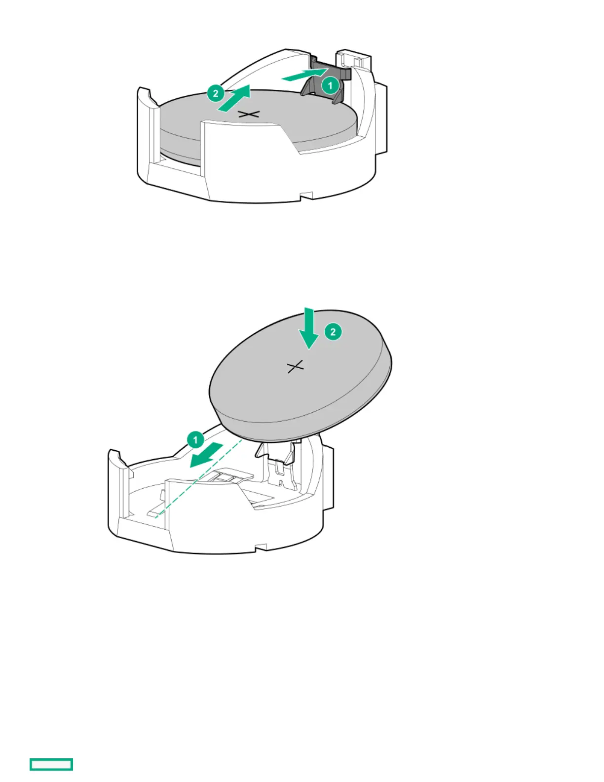 a. With the side of the battery showing the "+" sign facing up, insert the battery into the socket (callout 1).