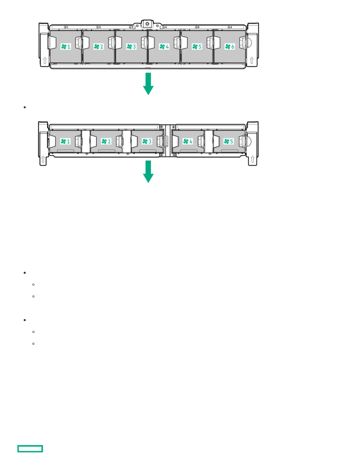 To provide sufficient airflow to the system, the server is by default populated by either six dual-rotor fans in the air cooling configuration, or