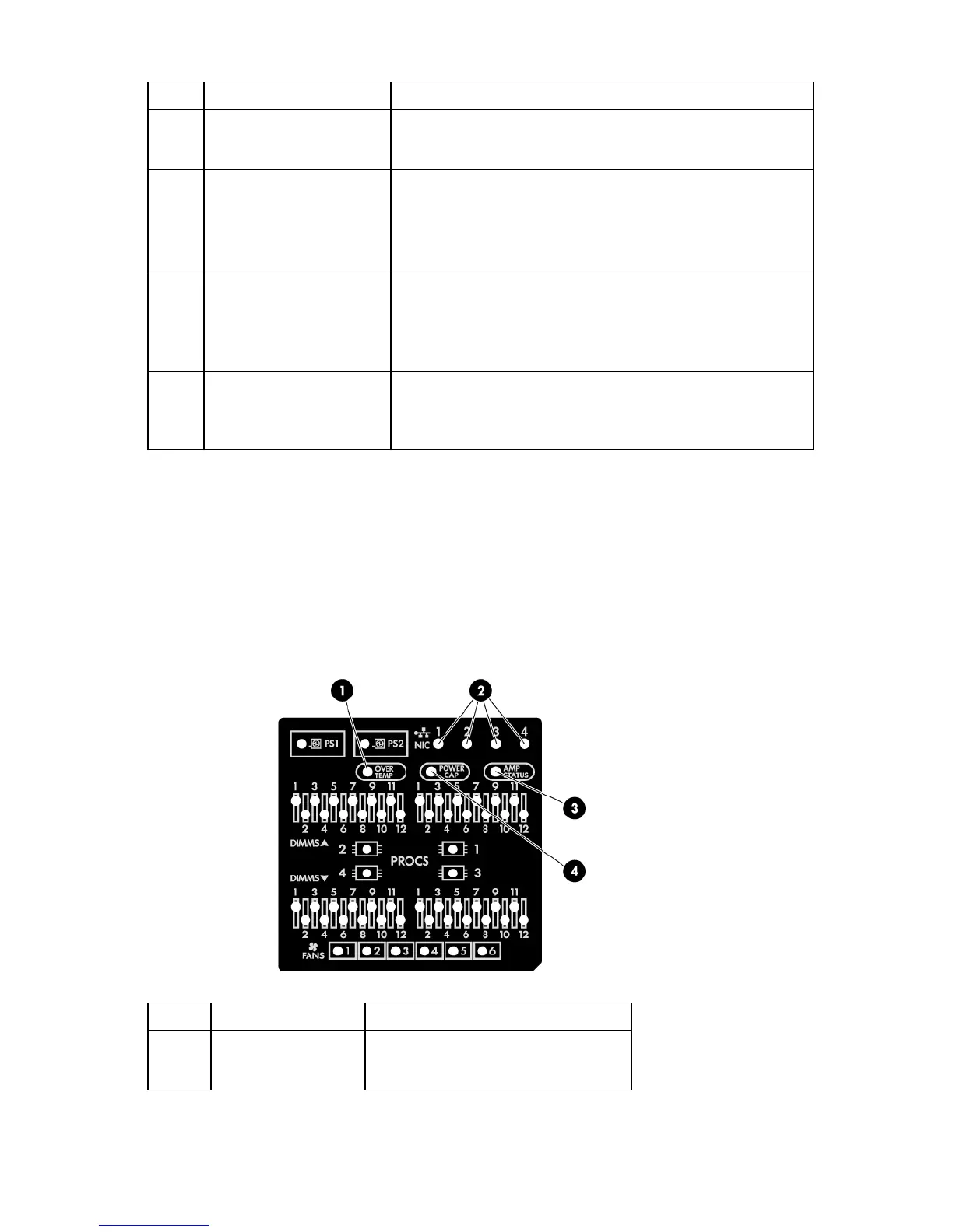 The HP Systems Insight Display LEDs represent the system board layout. The display enables diagnosis with