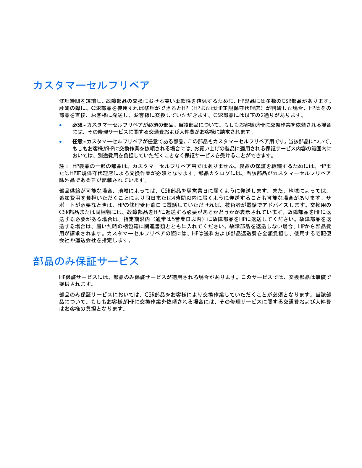 No caso desse serviço, a substituição de peças CSR é obrigatória. Se desejar que a HP substitua essas