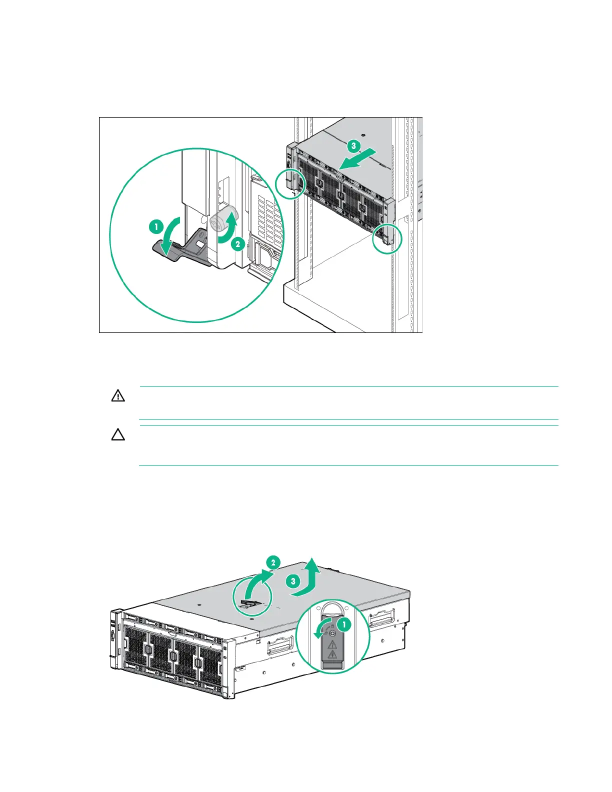 1. Pull down the quick-release levers on each side of the server to release the server from the rack. If