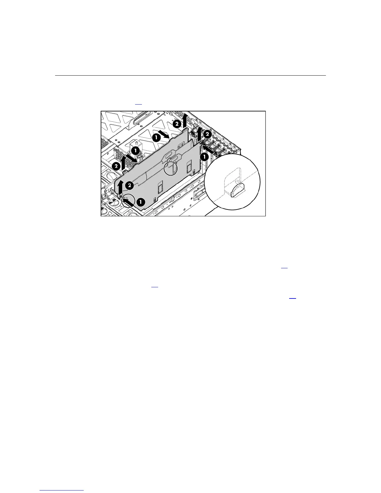 5. Remove the PCI-X Hot Plug basket ("Removing the PCI-X Hot Plug basket"