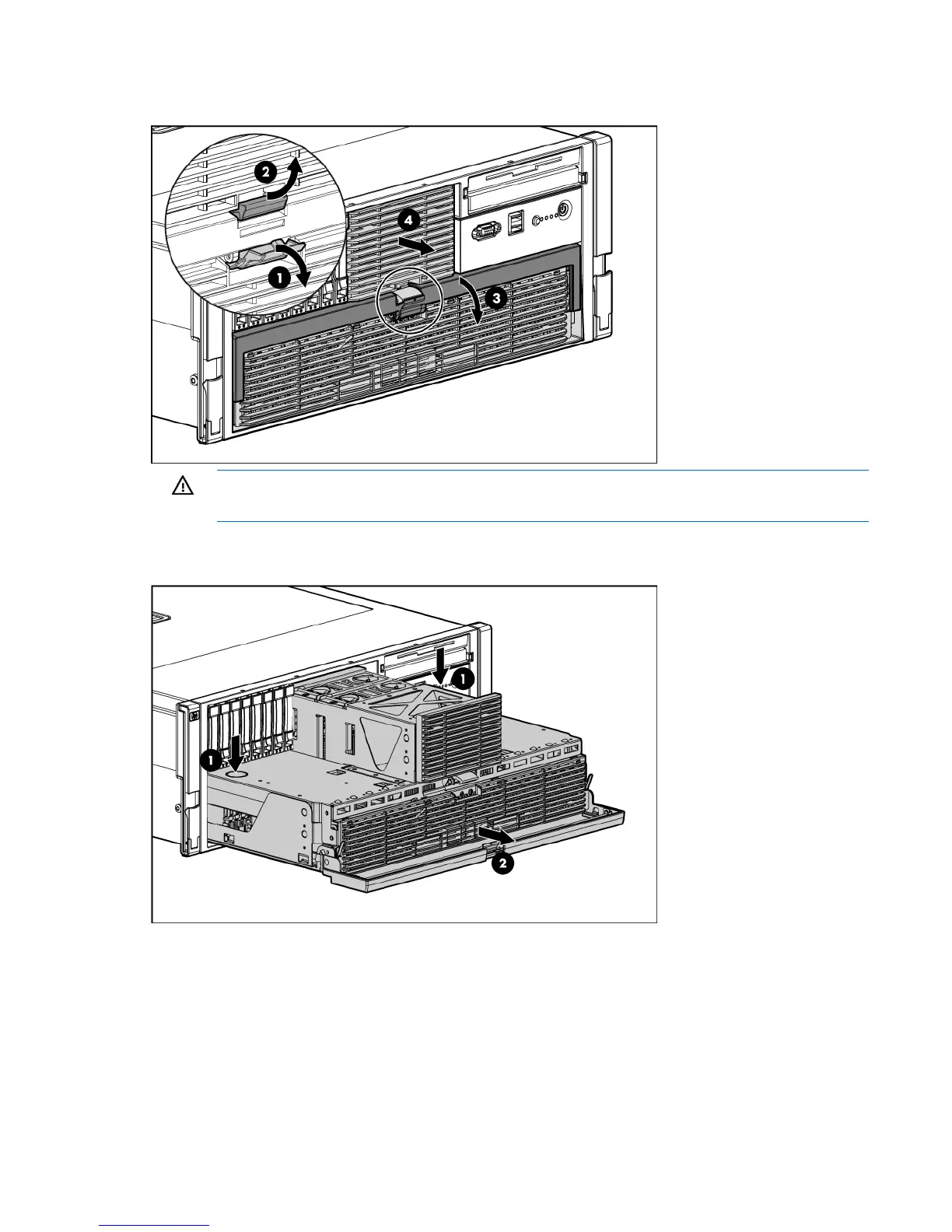 Lower the handle, and pull the processor memory module out of the server until the release latches