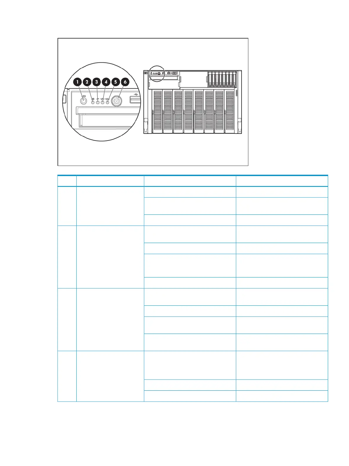 Front panel LEDs and buttons