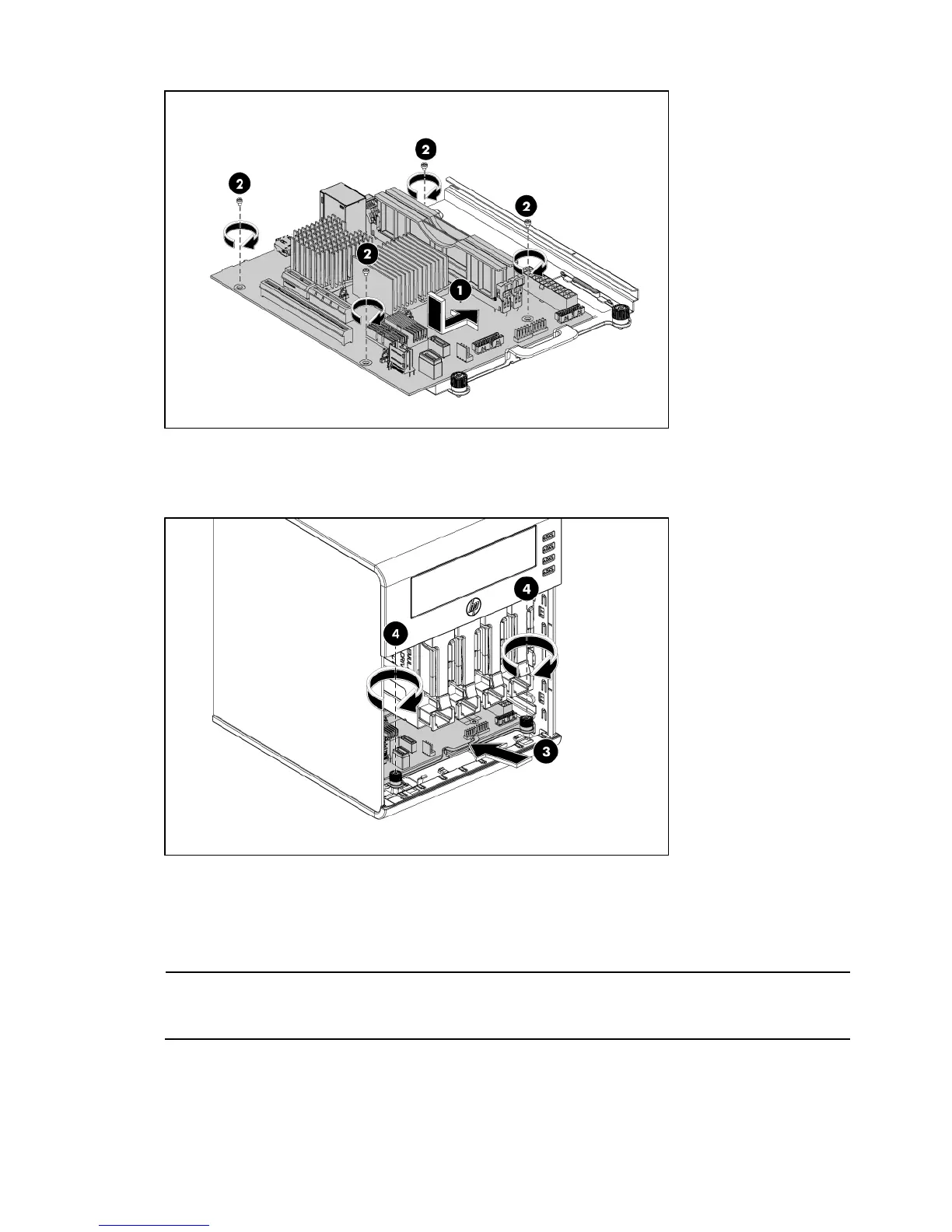 • Fasten the two screws to secure the system tray to the chassis (4).