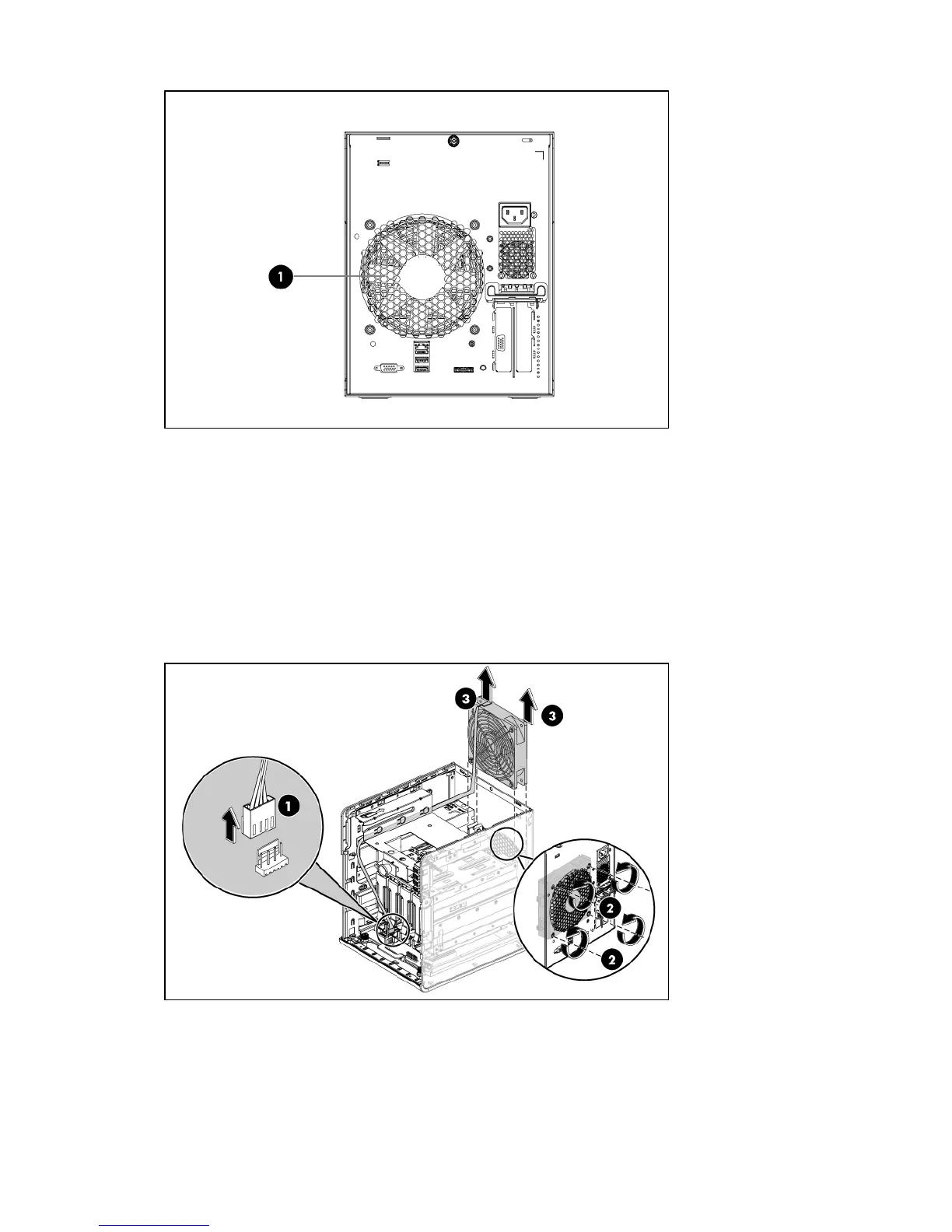 • Grasp the fan by the two handles, and lift it up from the chassis (3).