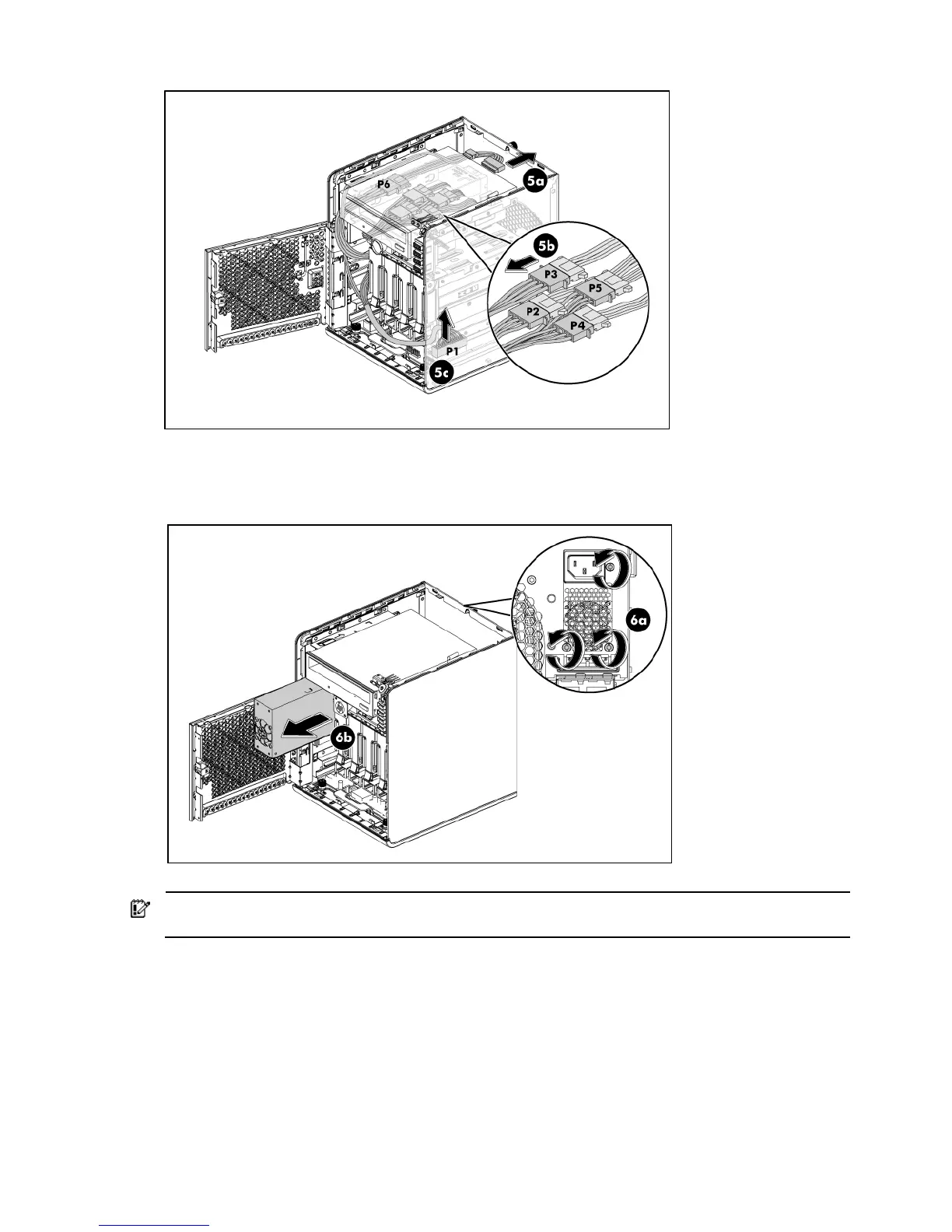 Unfasten the three screws on the back of chassis to release the power supply unit (6a).
