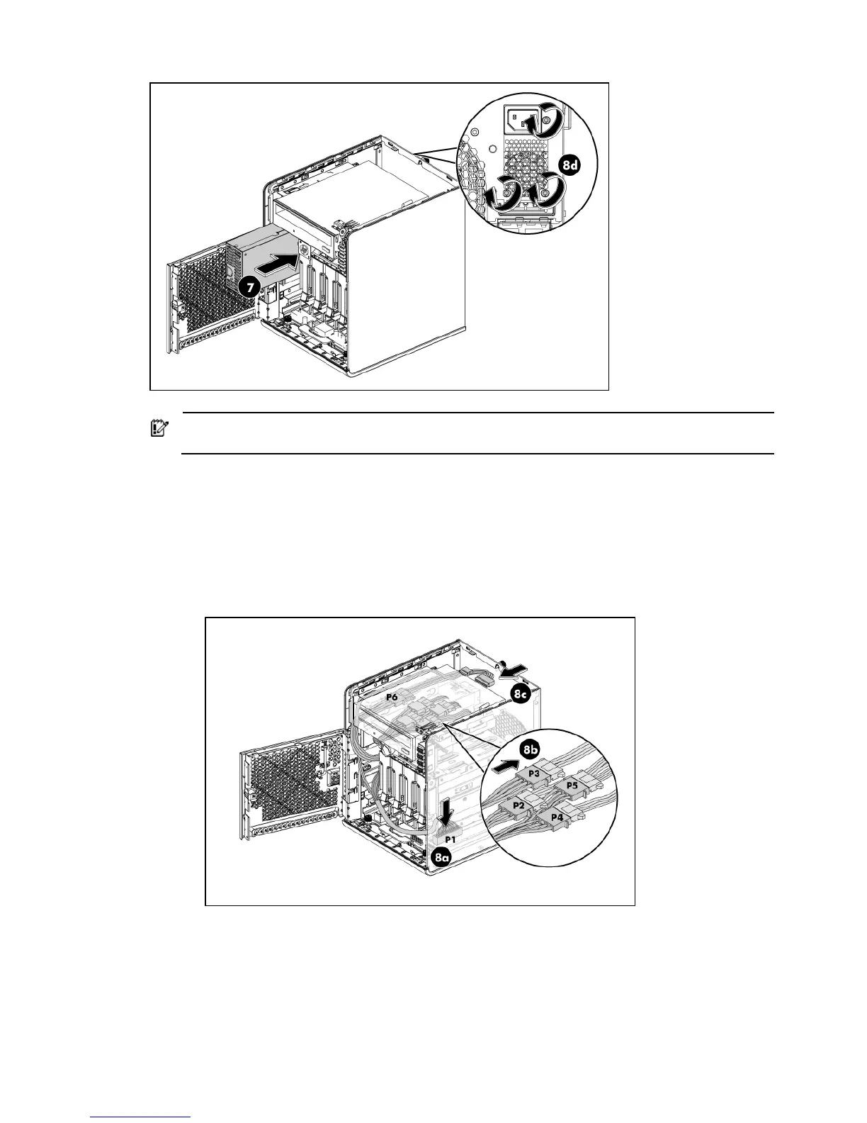 9. After installing the power supply and connecting the power cables, slide the top panel to