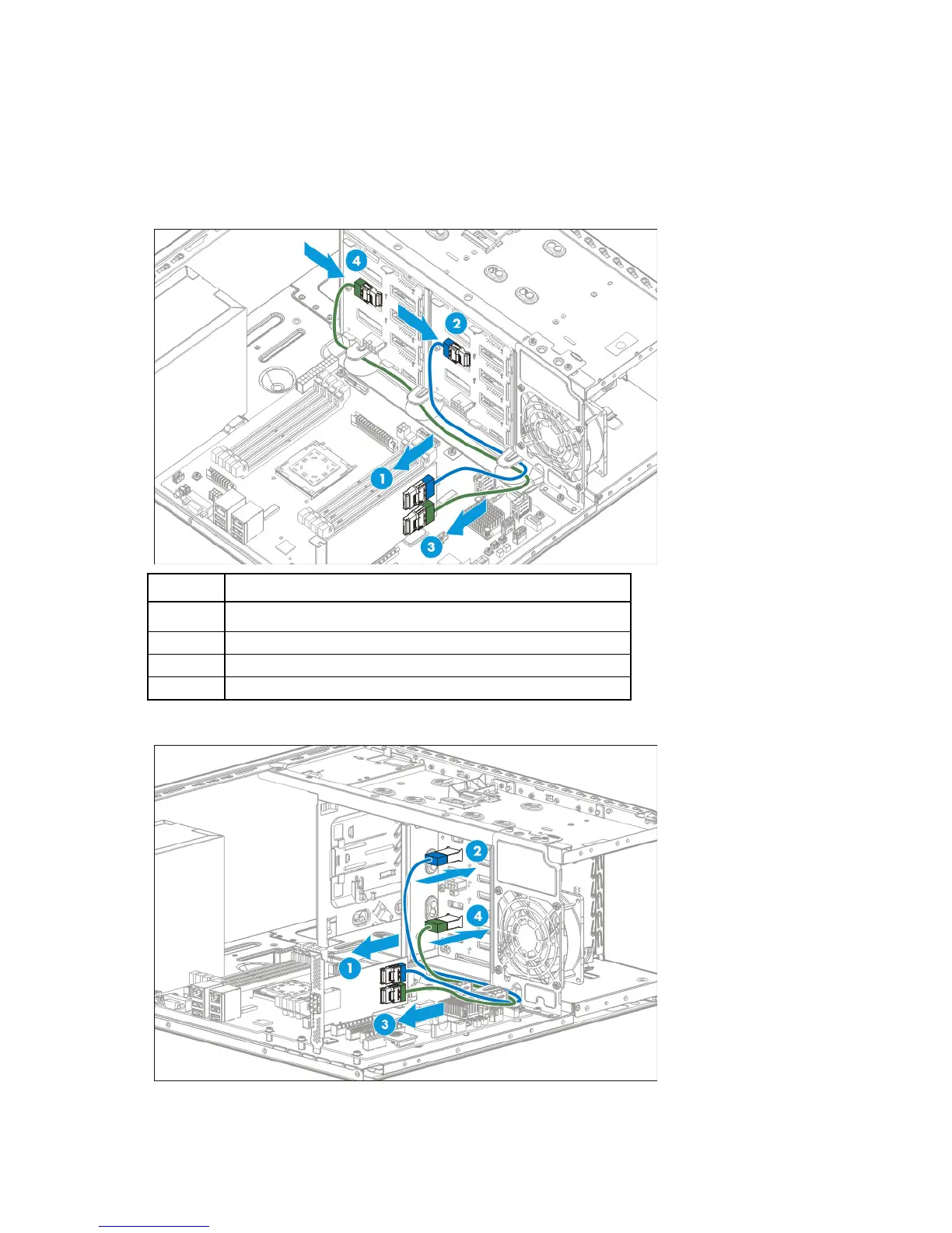 7. Disconnect the existing Mini-SAS cables from the drive backplane and the Mini-SAS connectors on the