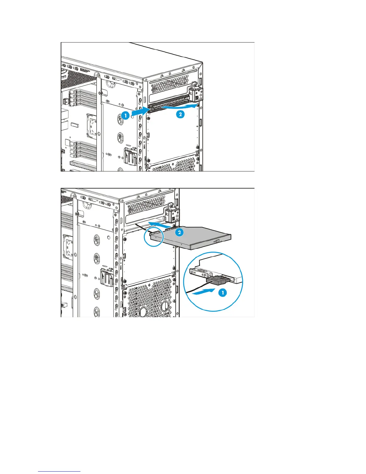 10. Connect the cable to the rear of the drive and then route the cable through the drive bay.