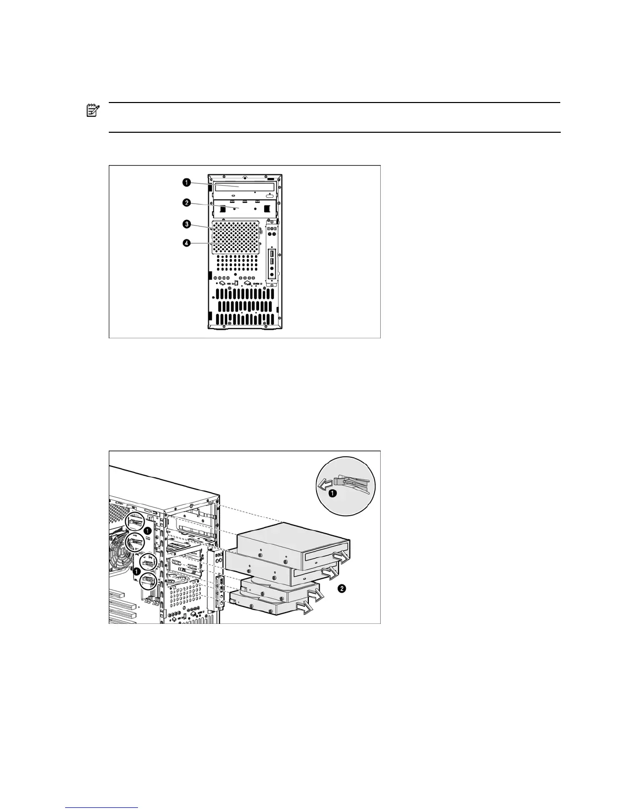 optical bays. The two lower drive bays can accommodate non-hot-plug hard drives.