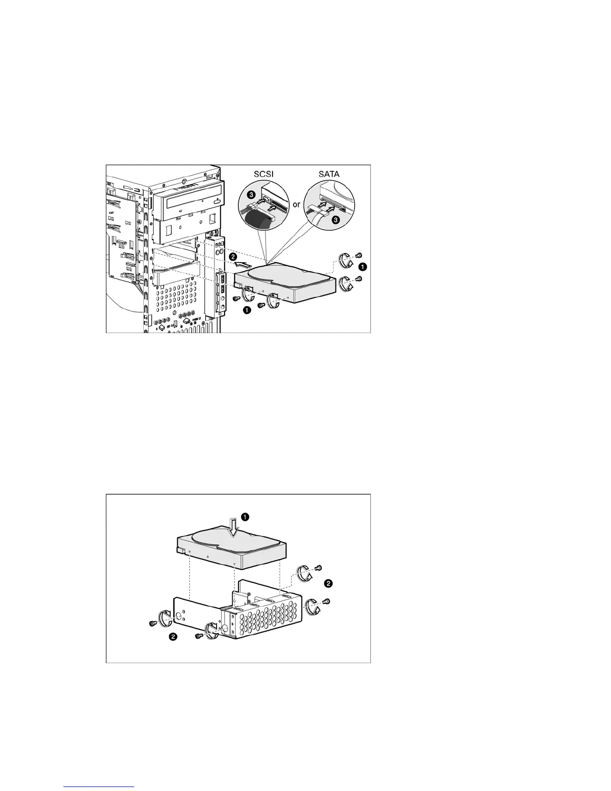 1. Insert the hard drive into the conversion kit bracket, making sure the screw holes in the bracket align with
