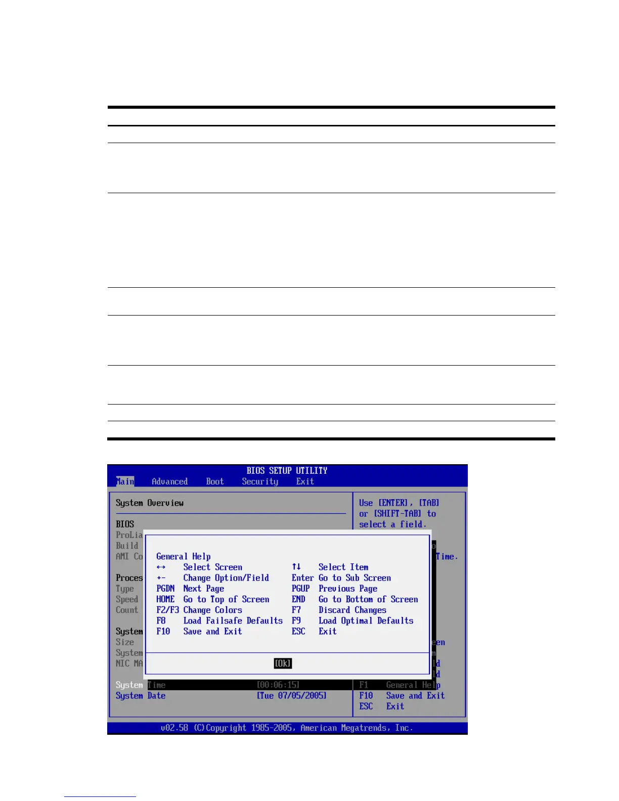 submenu screens of the Setup Utility. Table -1 lists these legend keys and their respective functions.