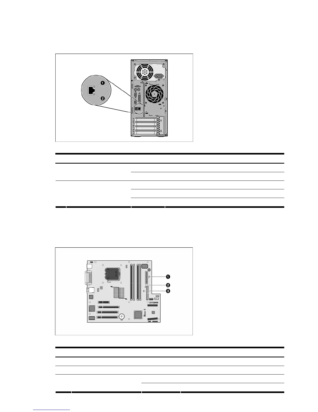 The system board contains two internal power status LED indicators for use during troubleshooting operations.