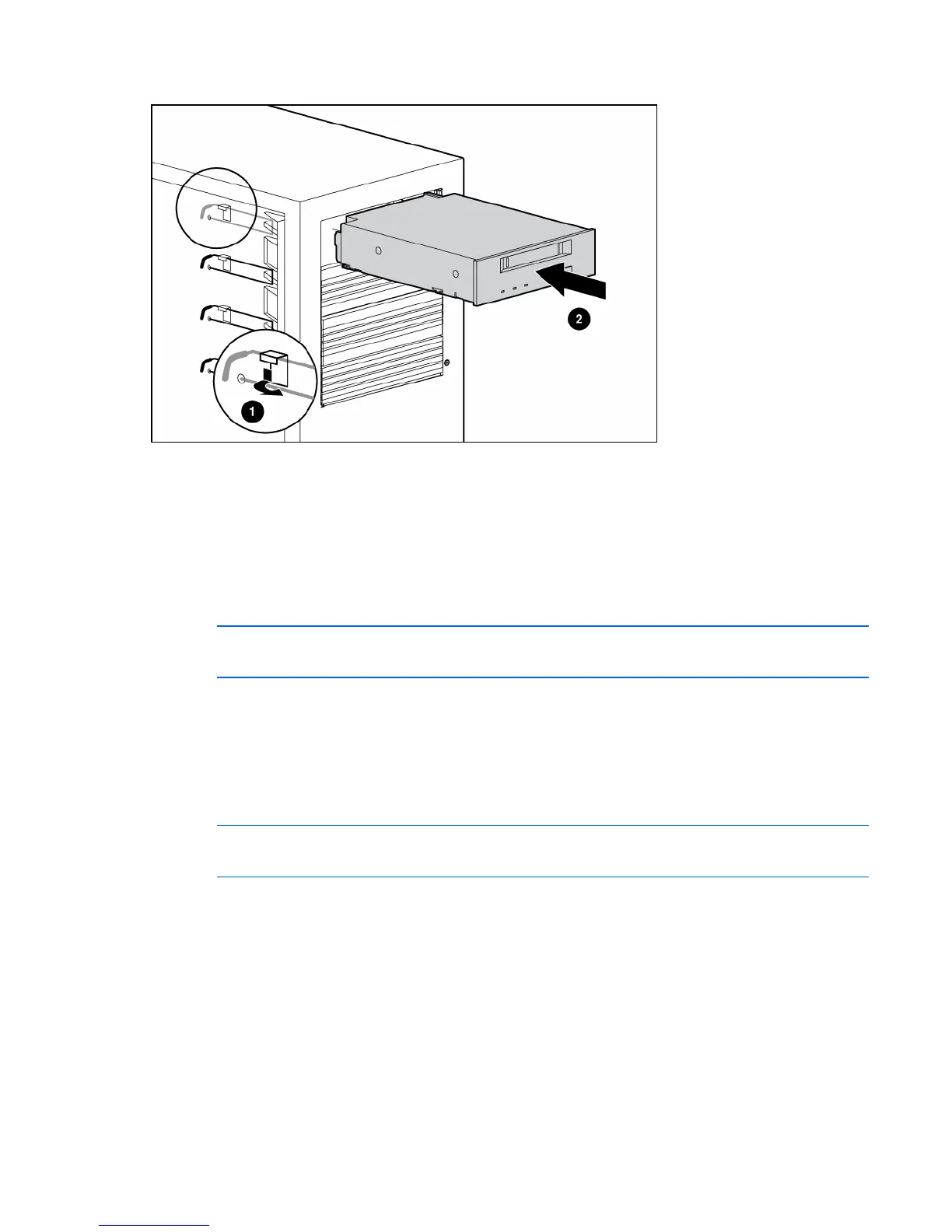 6. Release the media bay retainers and slide the half-height media device part of the way into the bay.