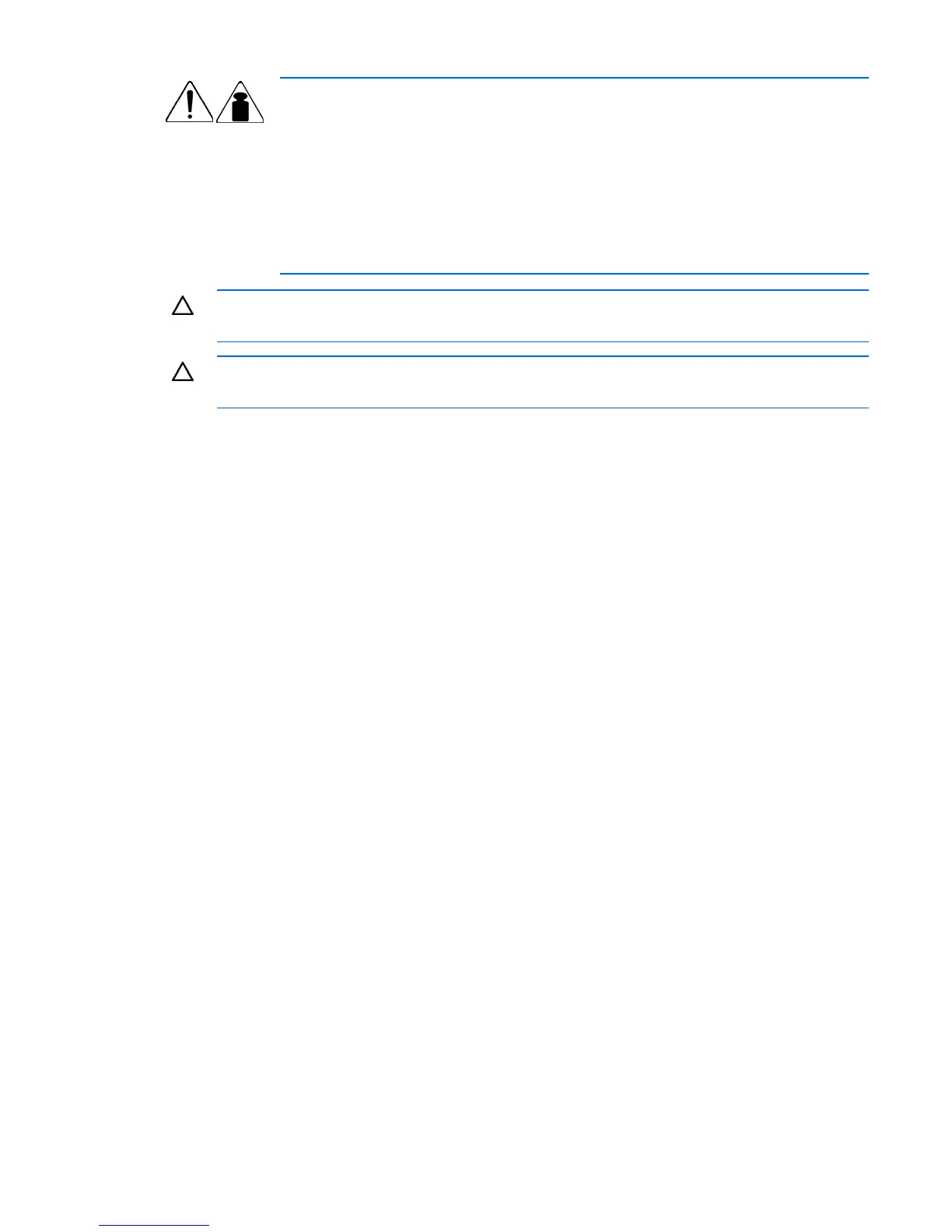 • When mounting the server in a rack, remove the power supplies and any other