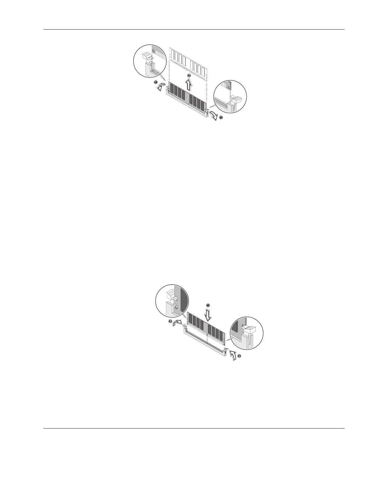 If the holding clips do not close, the DIMM is not inserted correctly.