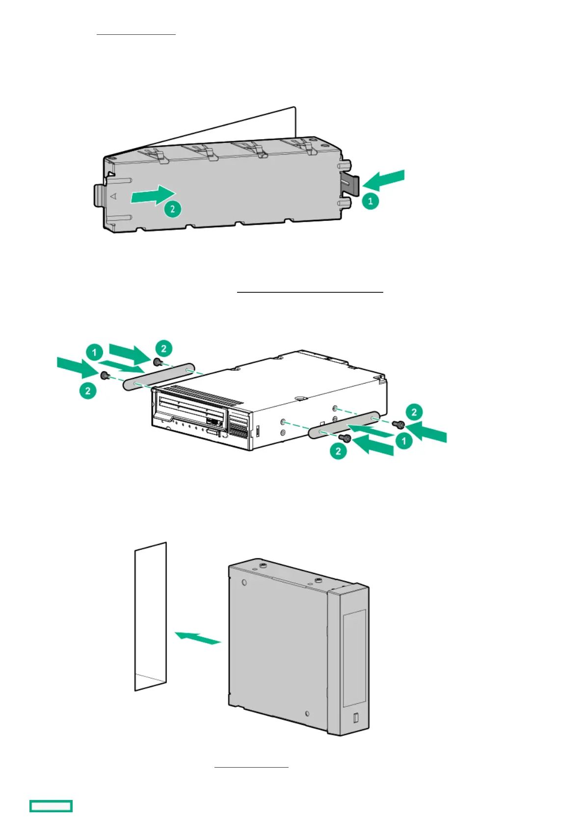 8. Press and hold the latch (callout 1), and then pull out the blank from the bay (callout 2).