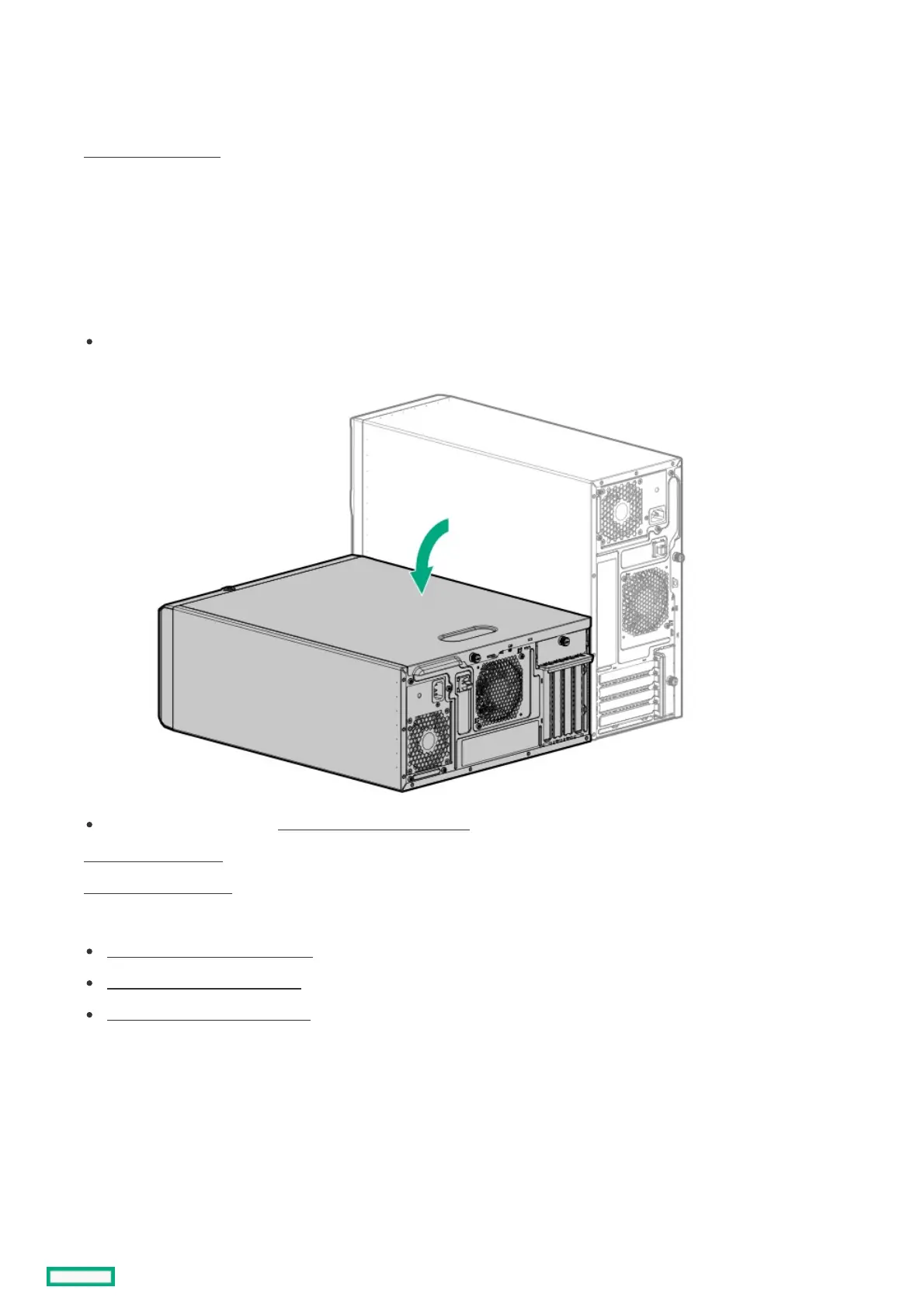 If the server is in tower mode, place the server on a flat, level surface with the access panel facing up.