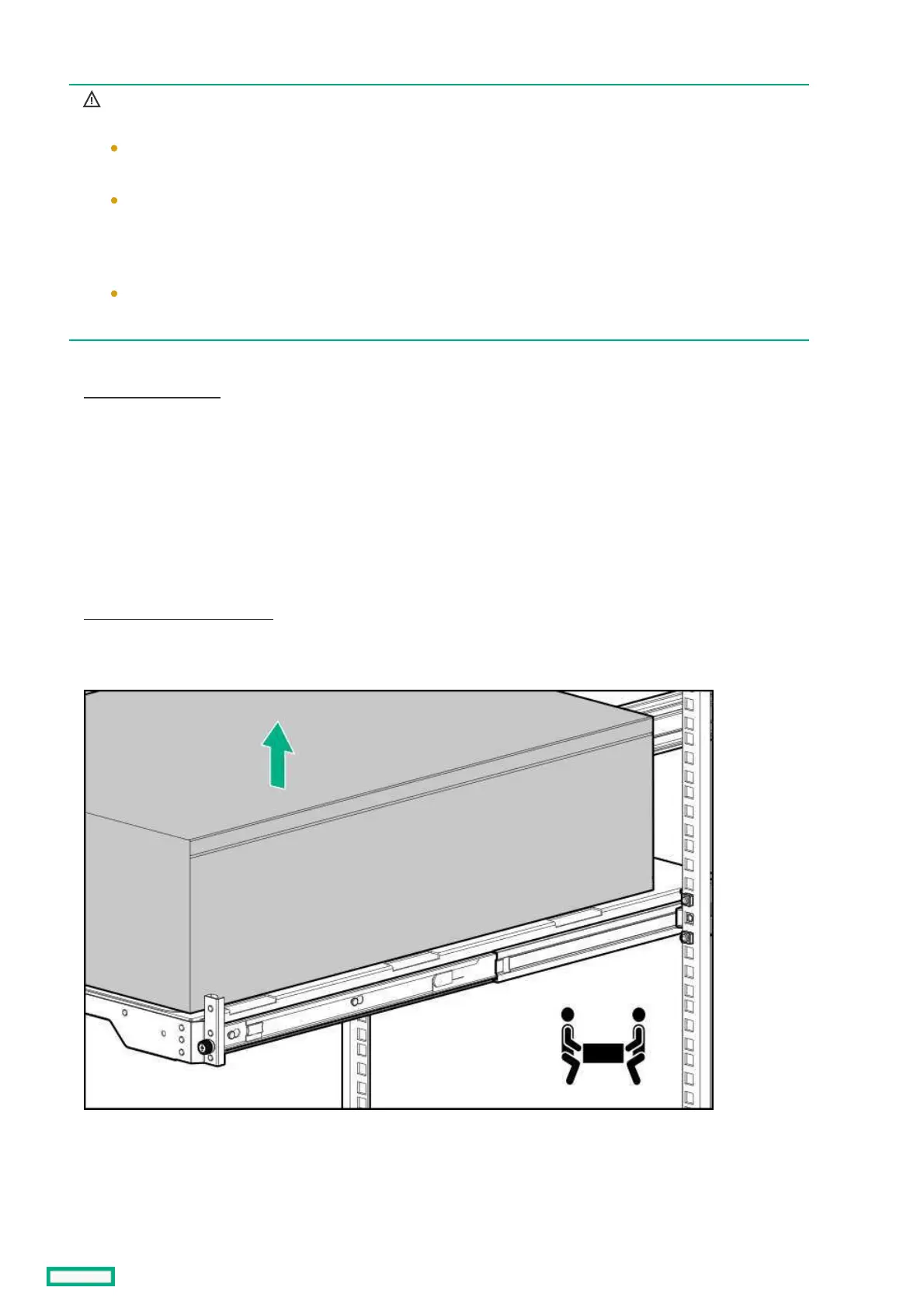 product is not fastened to the rails. Hewlett Packard Enterprise recommends that a