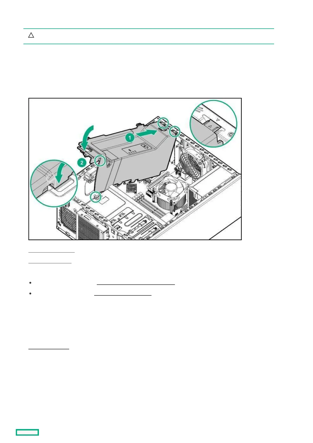 CAUTION: CAUTION: For proper cooling, do not operate the server without the access panel, baffles, expansion slot covers, or