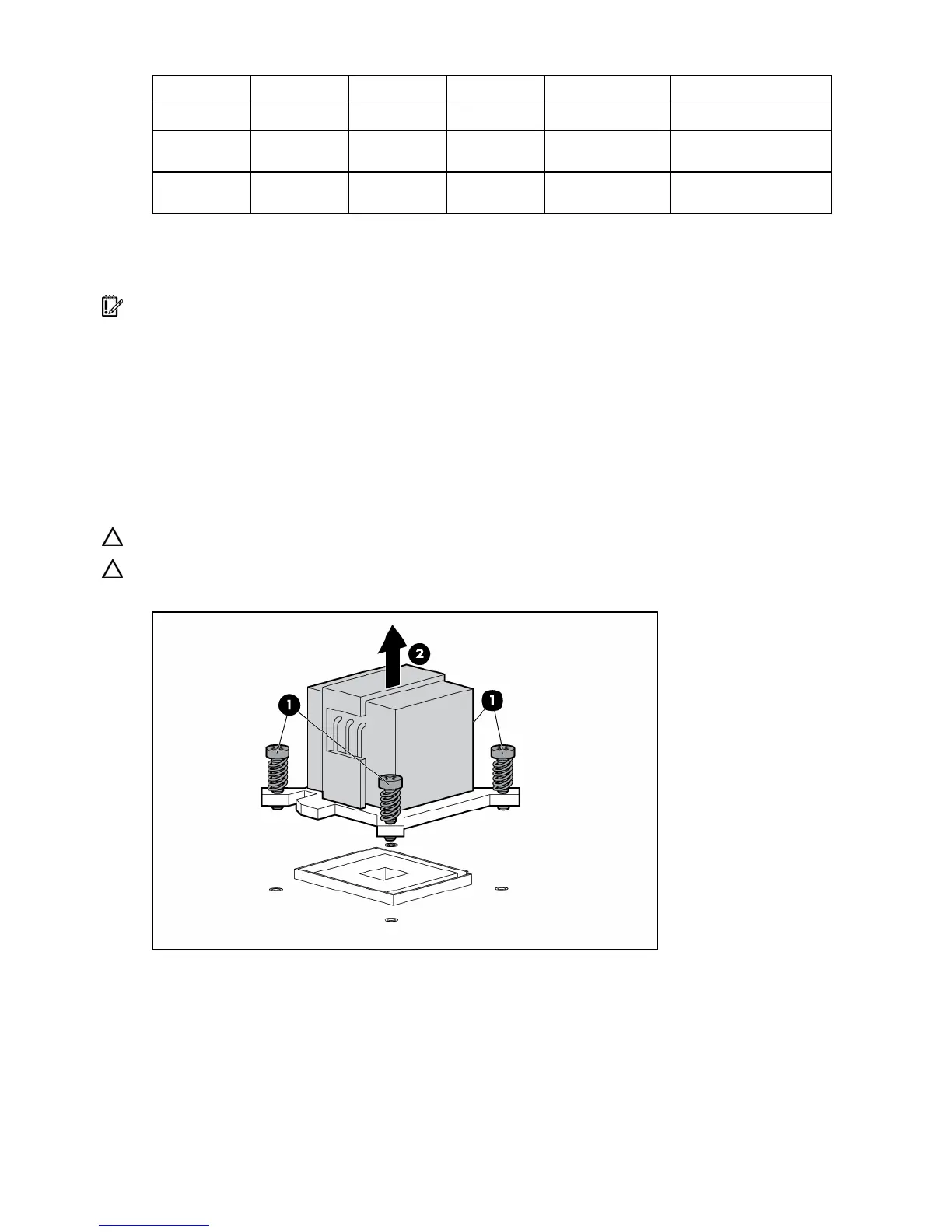 CAUTION: Heatsink retaining screws should be removed in diagonally opposite pairs (in an "X" pattern).