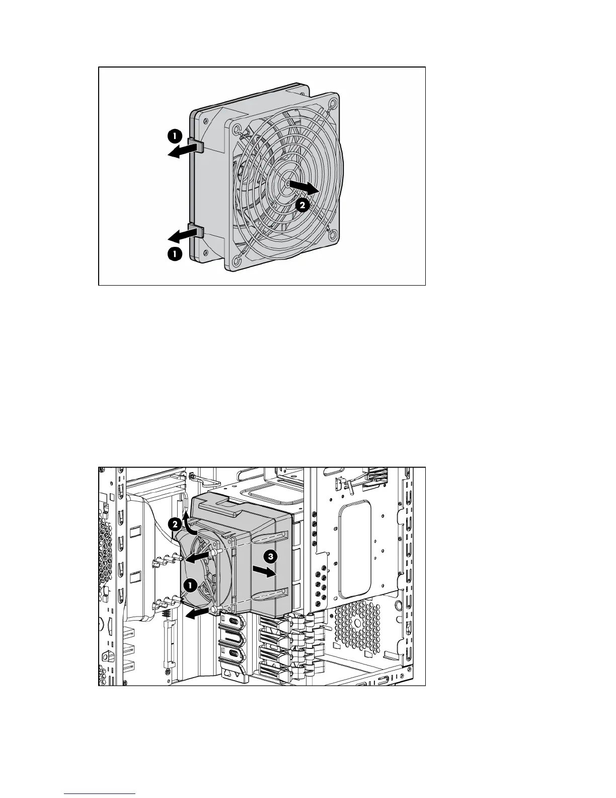 5. Disconnect the hard drive cage fan power cable from the system board.