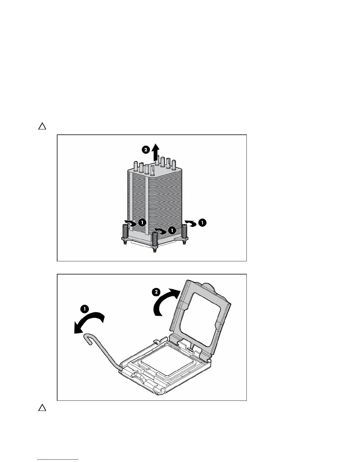 CAUTION: Heatsink retaining screws should be loosened in diagonally opposite pairs (in an "X" pattern).