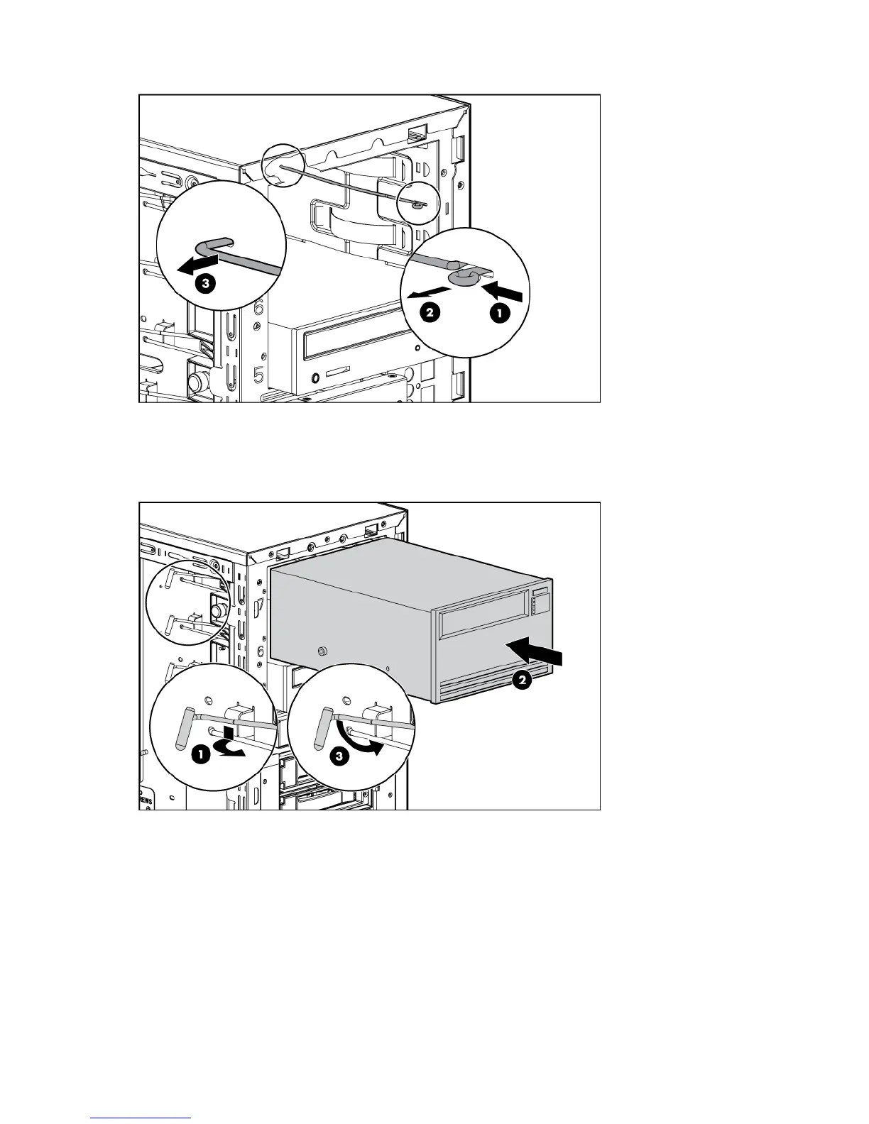 Use a screwdriver to disengage the two wire supports inside the half-height drive bays.