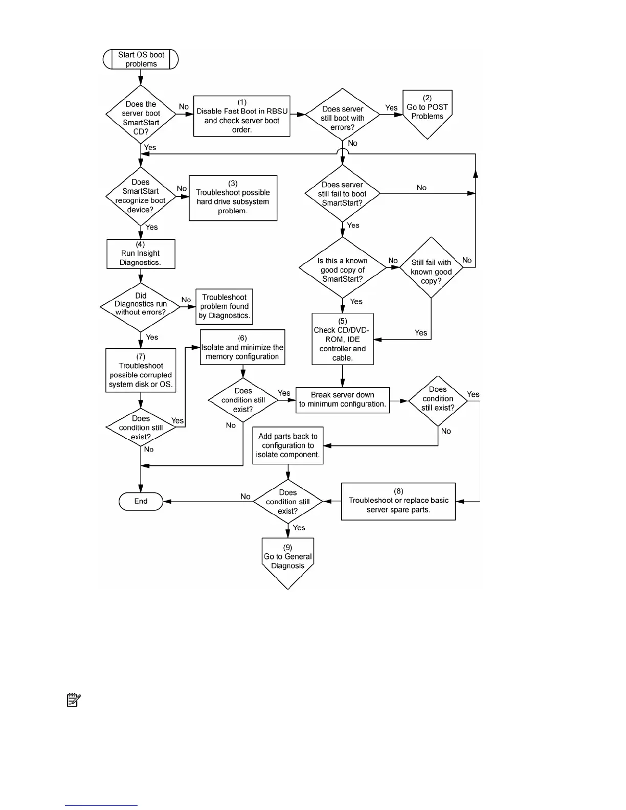 • Server boots, but a fault event is reported by Insight Management Agents (on page 45)