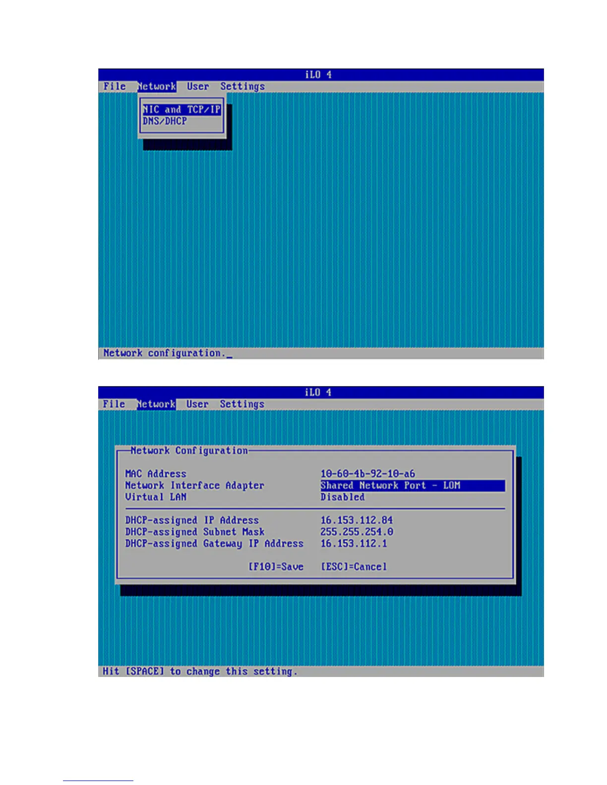 3. Set the Network Interface Adapter field to Shared Network Port — LOM.
