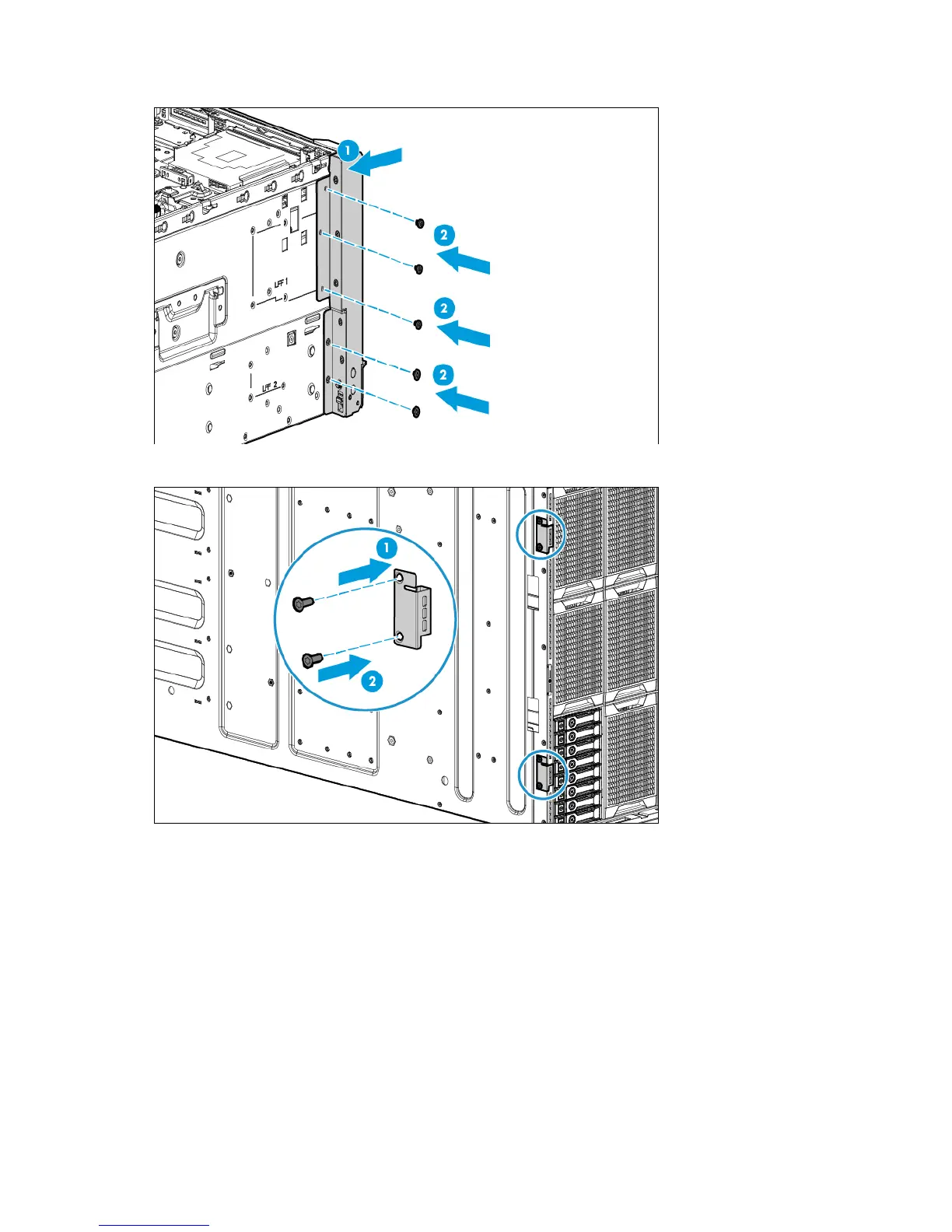 16. Install the left and right security bezel ears with T-15 screws.