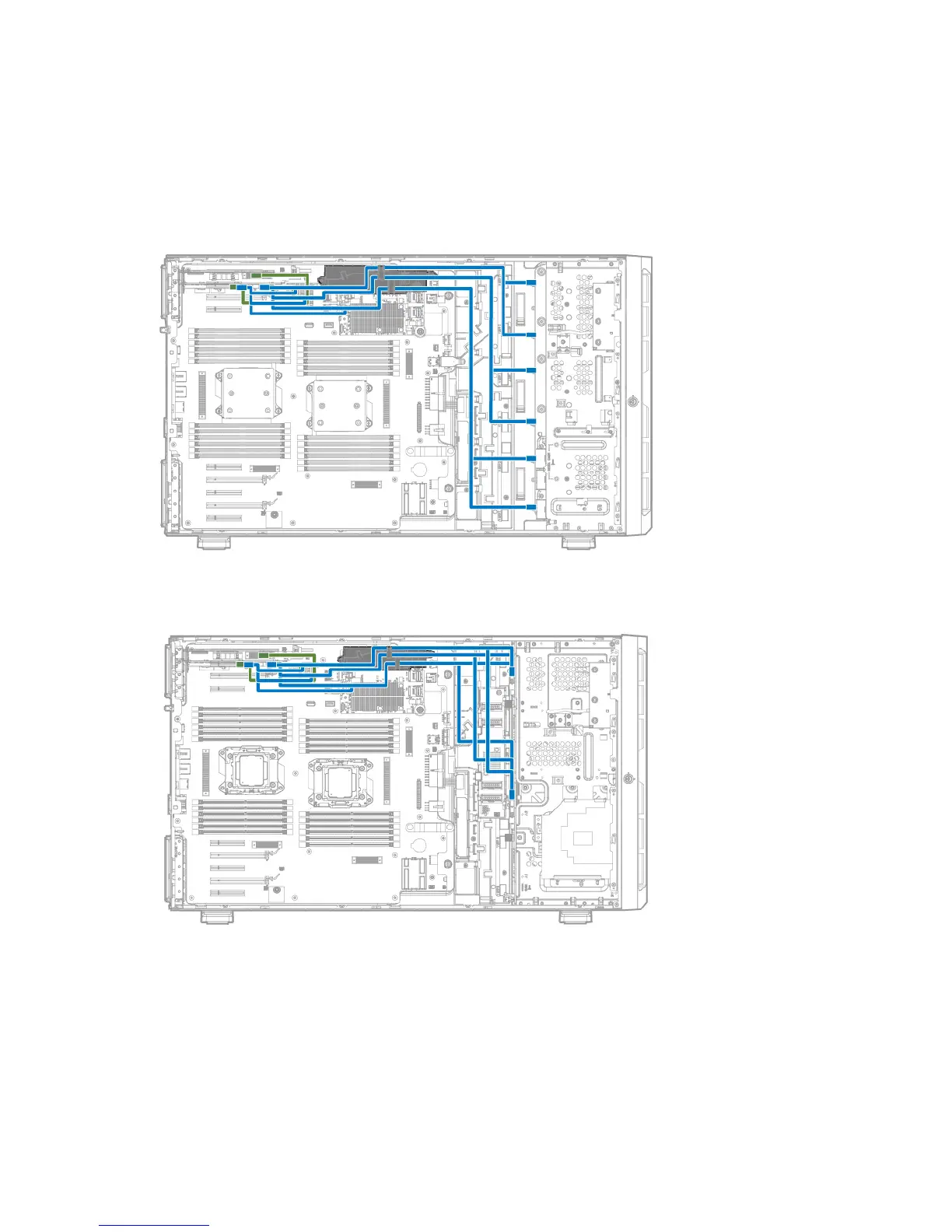 11. Connect each end of the three Mini-SAS X cables to the matching port on each drive box backplane.