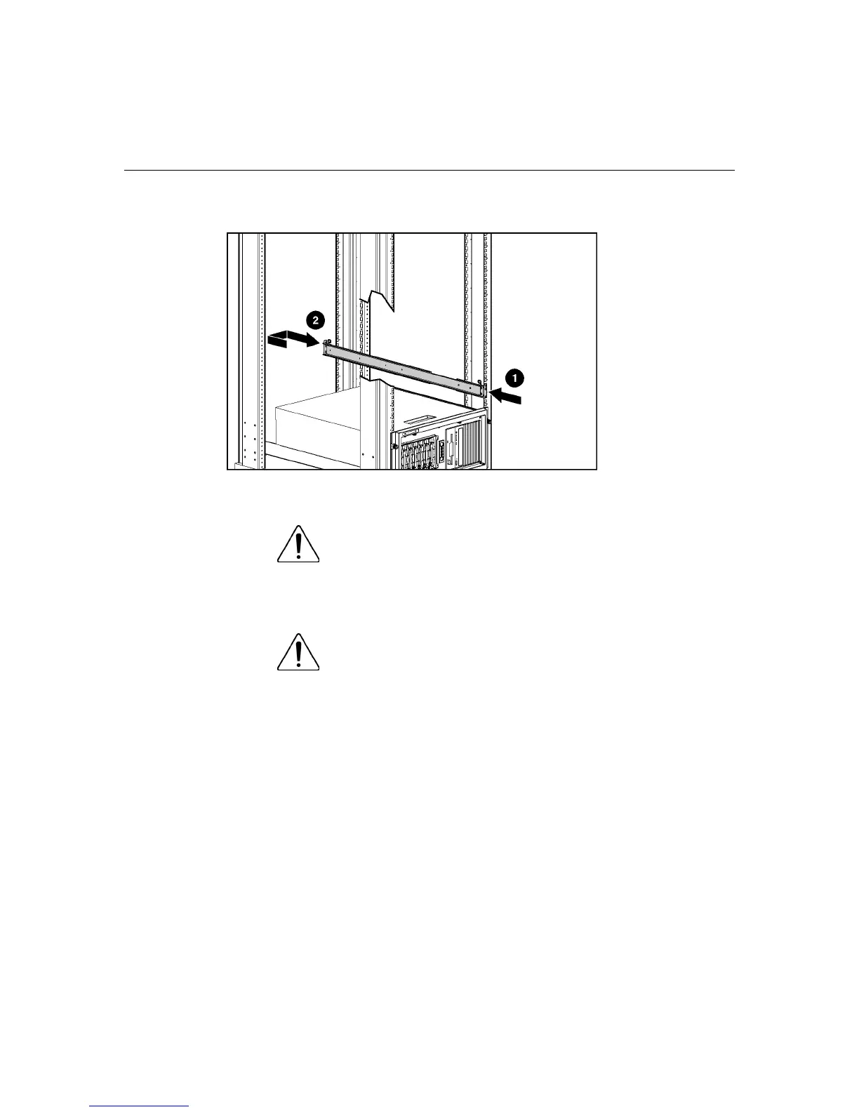 5. Press the rail-release latches, slide the server into the rack and tighten the